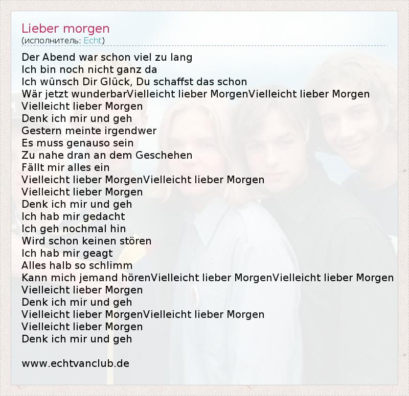 А как ты думаешь, о чем песня "Lieber morgen" ?