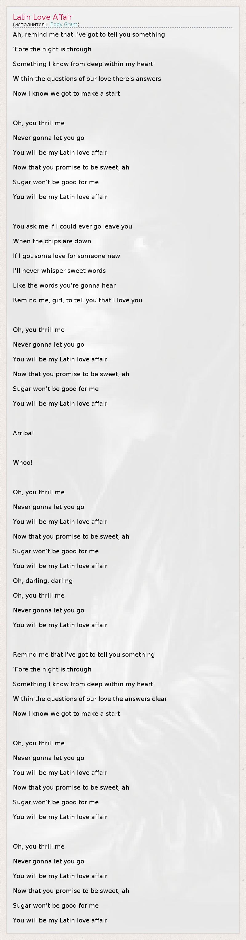 А как ты думаешь, о чем песня "Latin Love Affair" ?