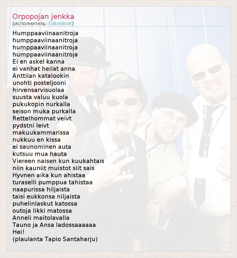 А как ты думаешь, о чем песня "Orpopojan jenkka" ?