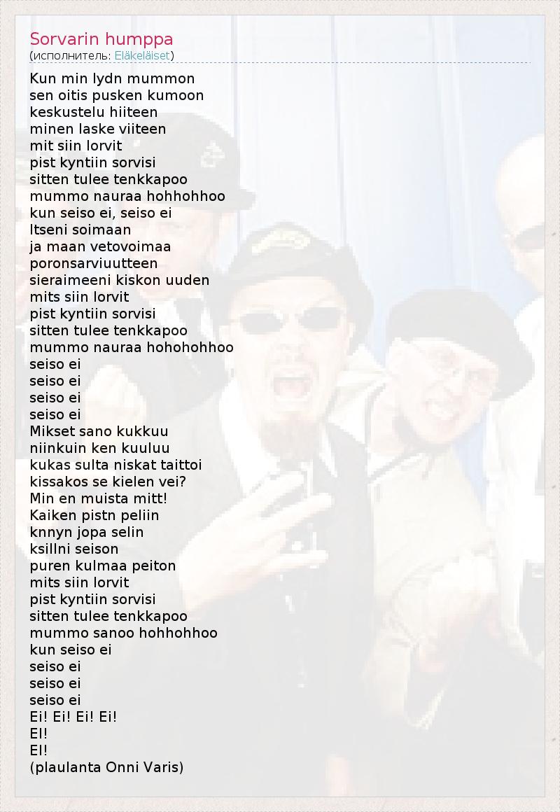 А как ты думаешь, о чем песня "Sorvarin humppa" ?