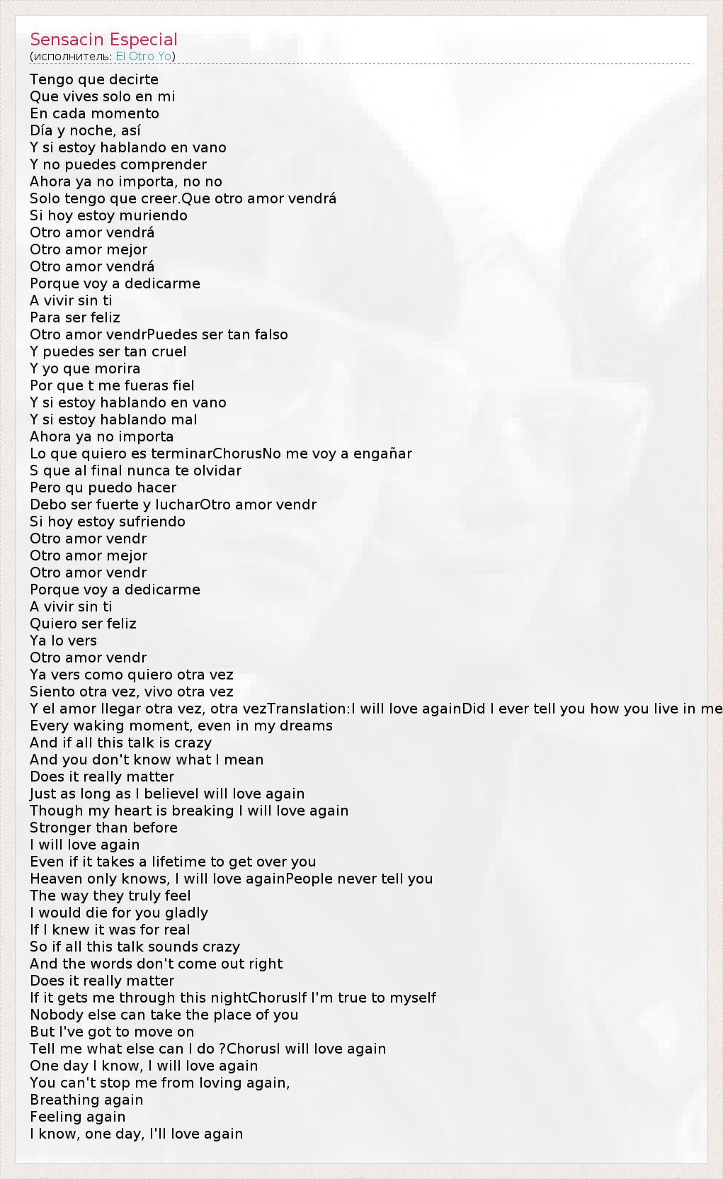 А как ты думаешь, о чем песня "Sensacin Especial" ?