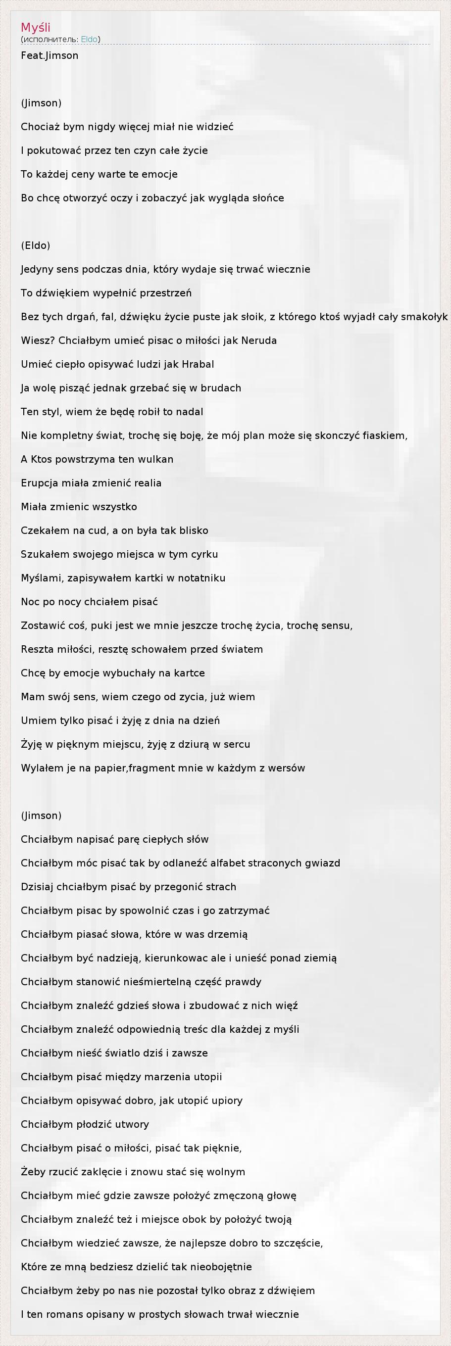 А как ты думаешь, о чем песня "Myśli" ?