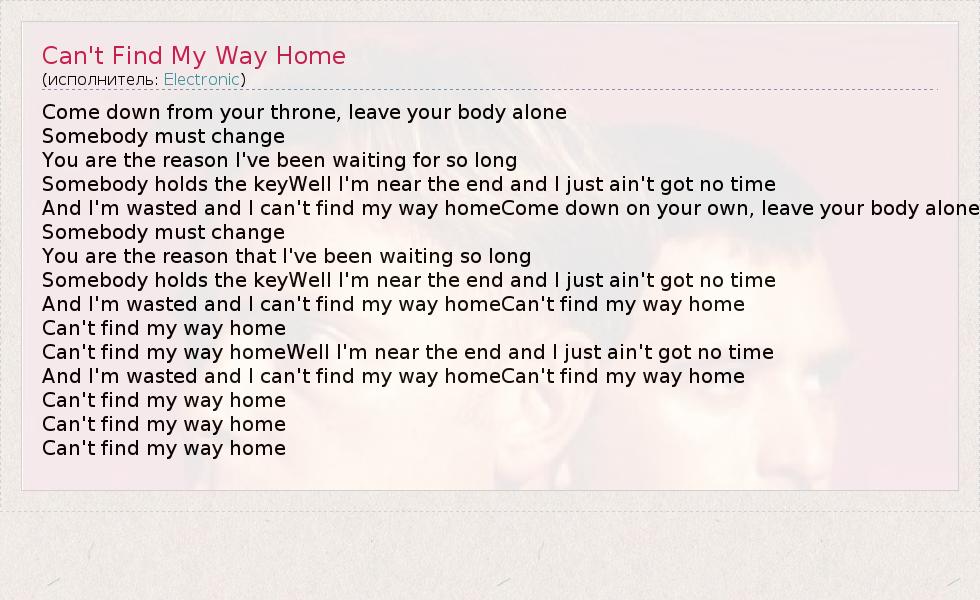 А как ты думаешь, о чем песня "Can't Find My Way Home" ?