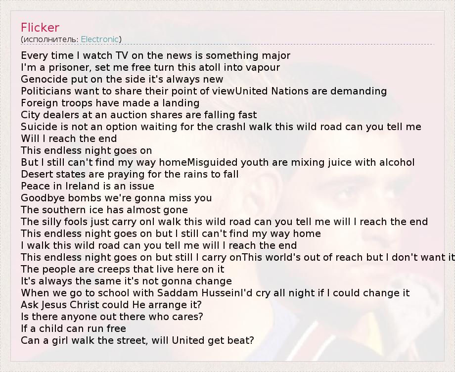 Suicide is not an option waiting for the crashI walk this wild road can you tell me