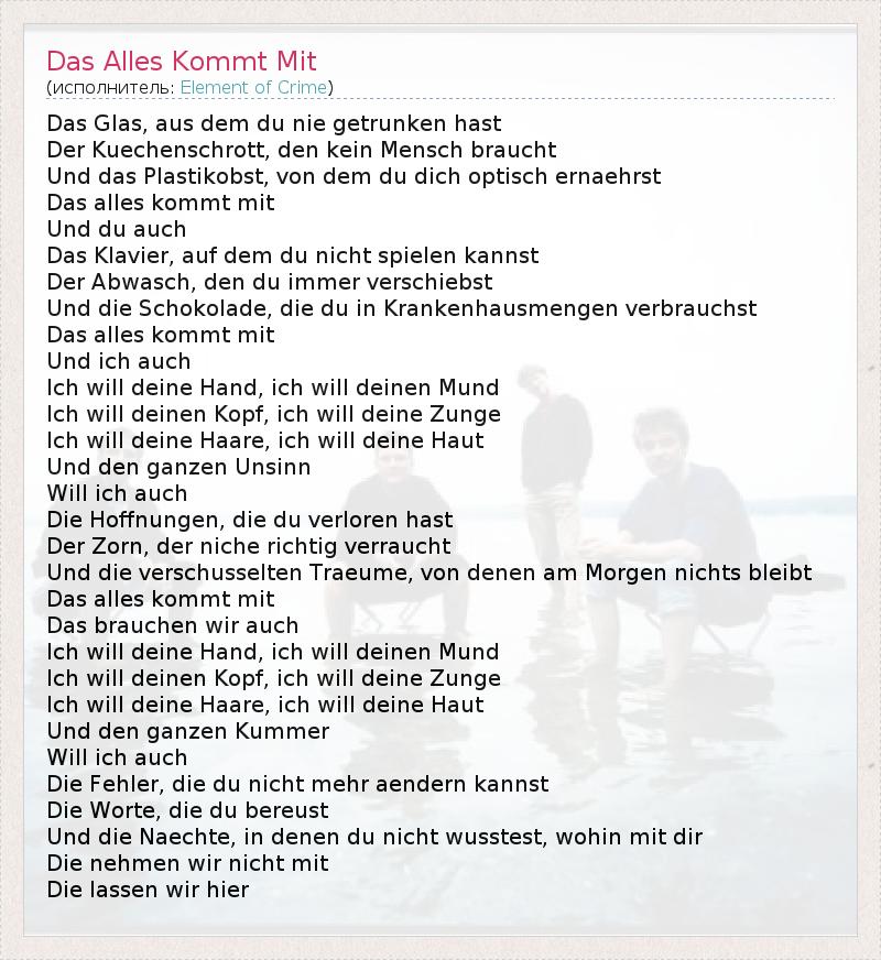А как ты думаешь, о чем песня "Das Alles Kommt Mit" ?