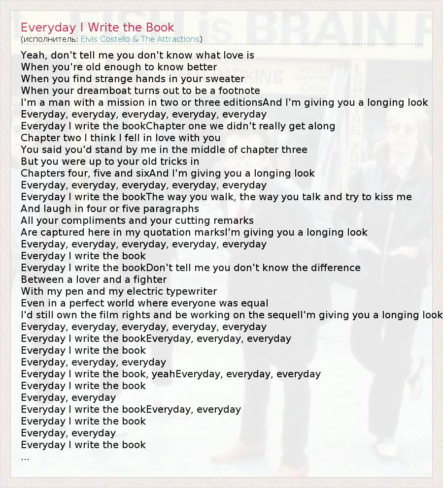 А как ты думаешь, о чем песня "Everyday I Write the Book" ?
