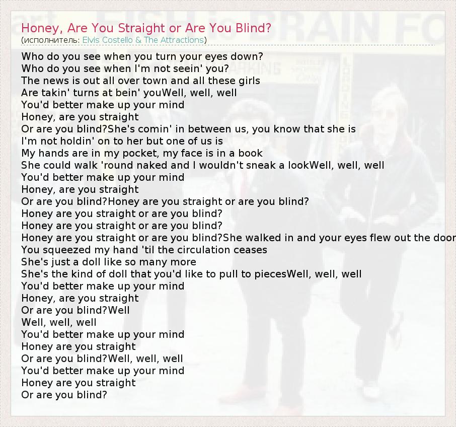 ГлавнаяИсполнителиElvis Costello & The AttractionsHoney, Are You Straight or Are You Blind?