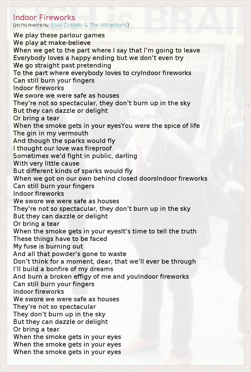 А как ты думаешь, о чем песня "Indoor Fireworks" ?