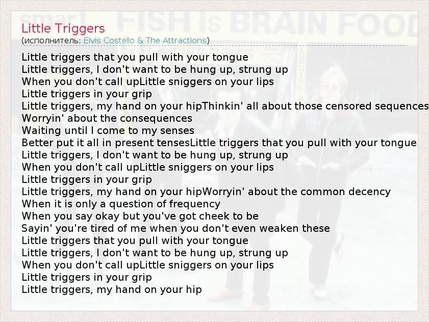 А как ты думаешь, о чем песня "Little Triggers" ?