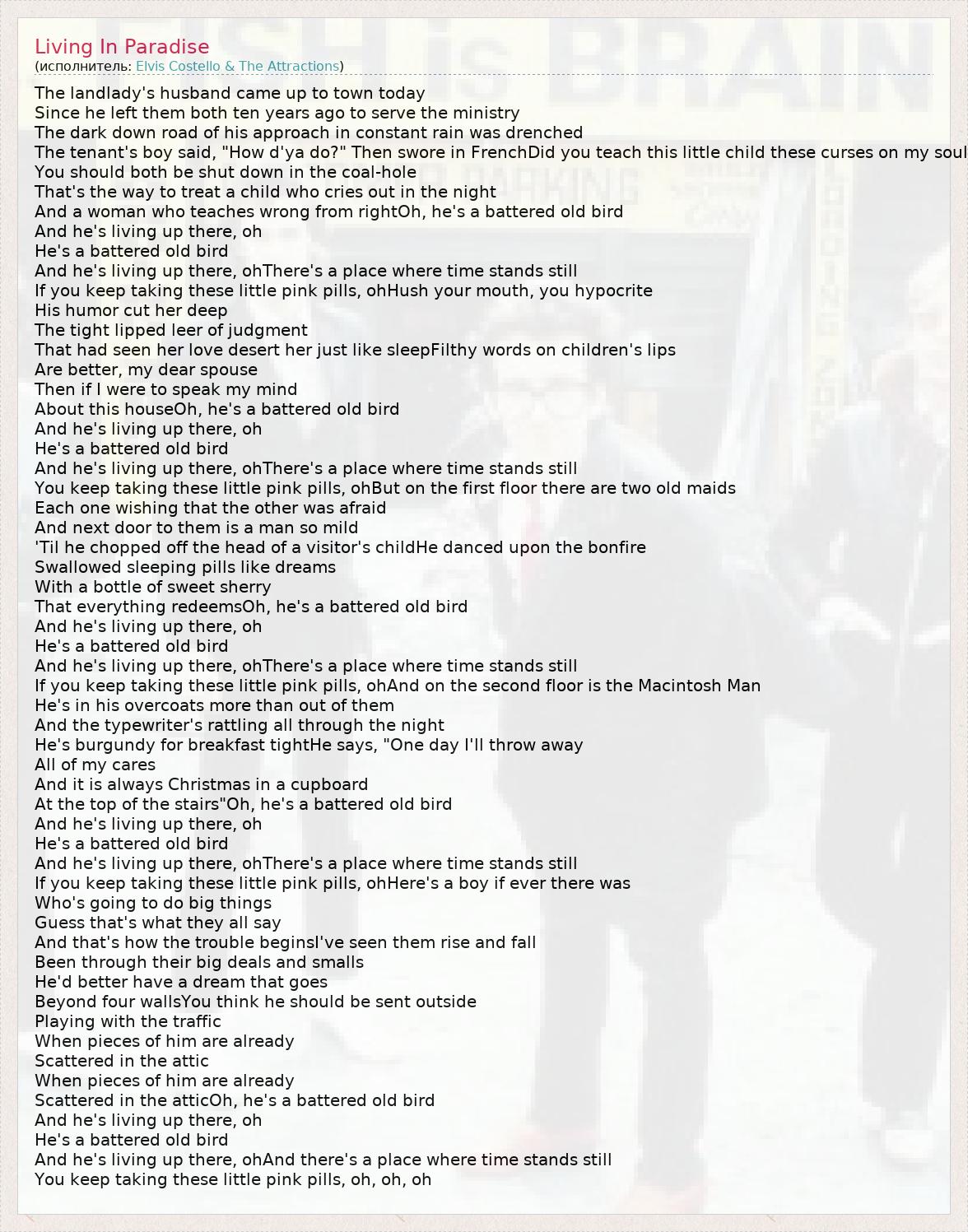 А как ты думаешь, о чем песня "Living In Paradise" ?