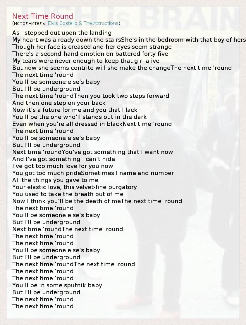 А как ты думаешь, о чем песня "Next Time Round" ?