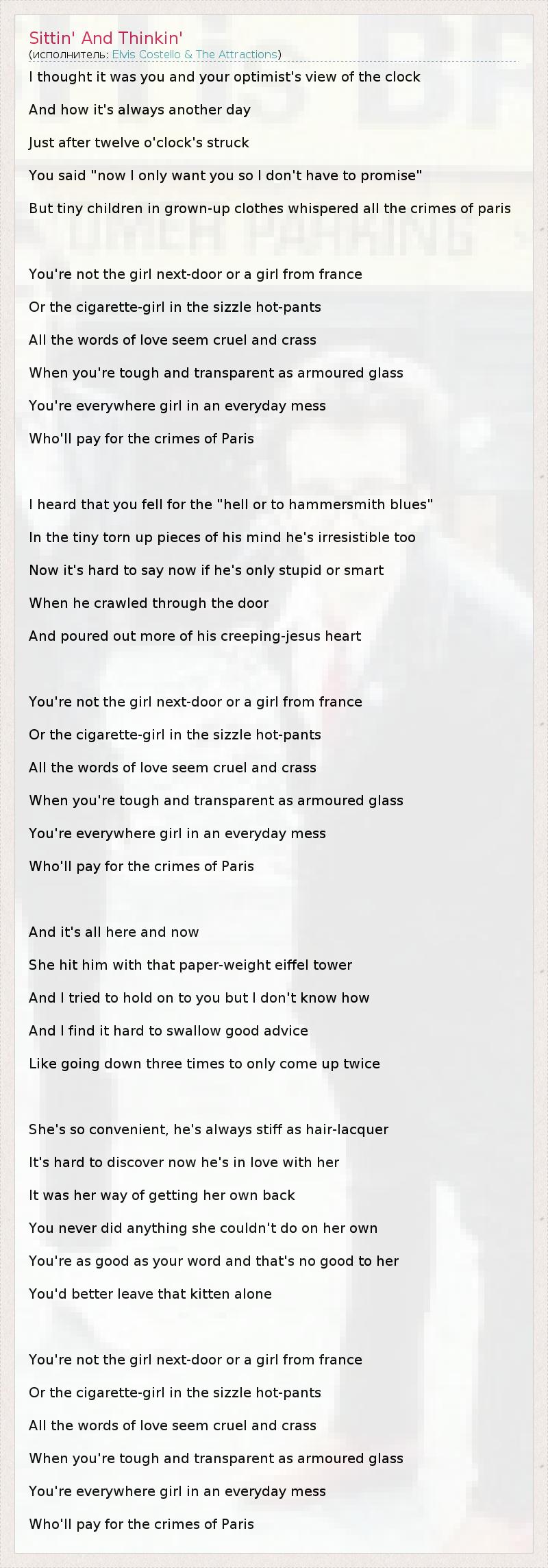 А как ты думаешь, о чем песня "Sittin' And Thinkin'" ?