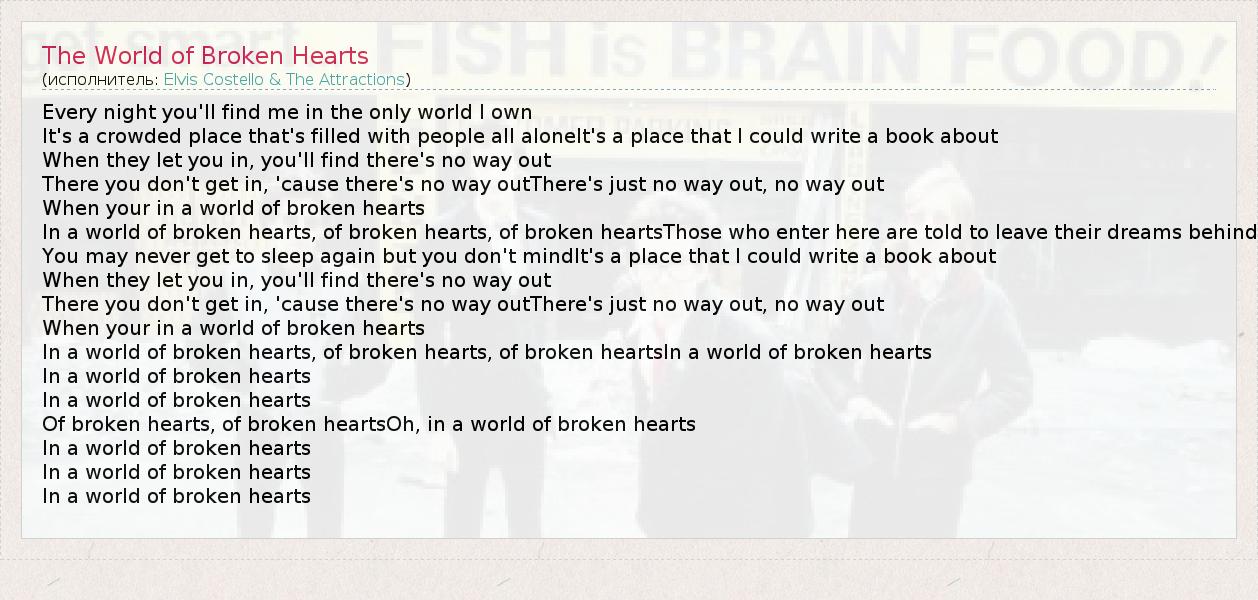 А как ты думаешь, о чем песня "The World of Broken Hearts" ?