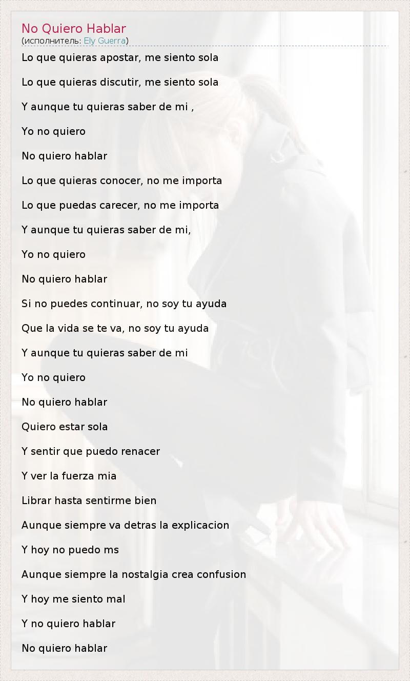 А как ты думаешь, о чем песня "No Quiero Hablar" ?