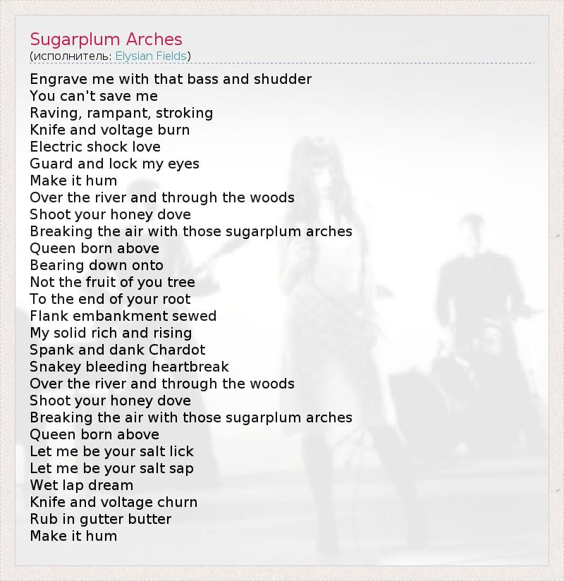 А как ты думаешь, о чем песня "Sugarplum Arches" ?