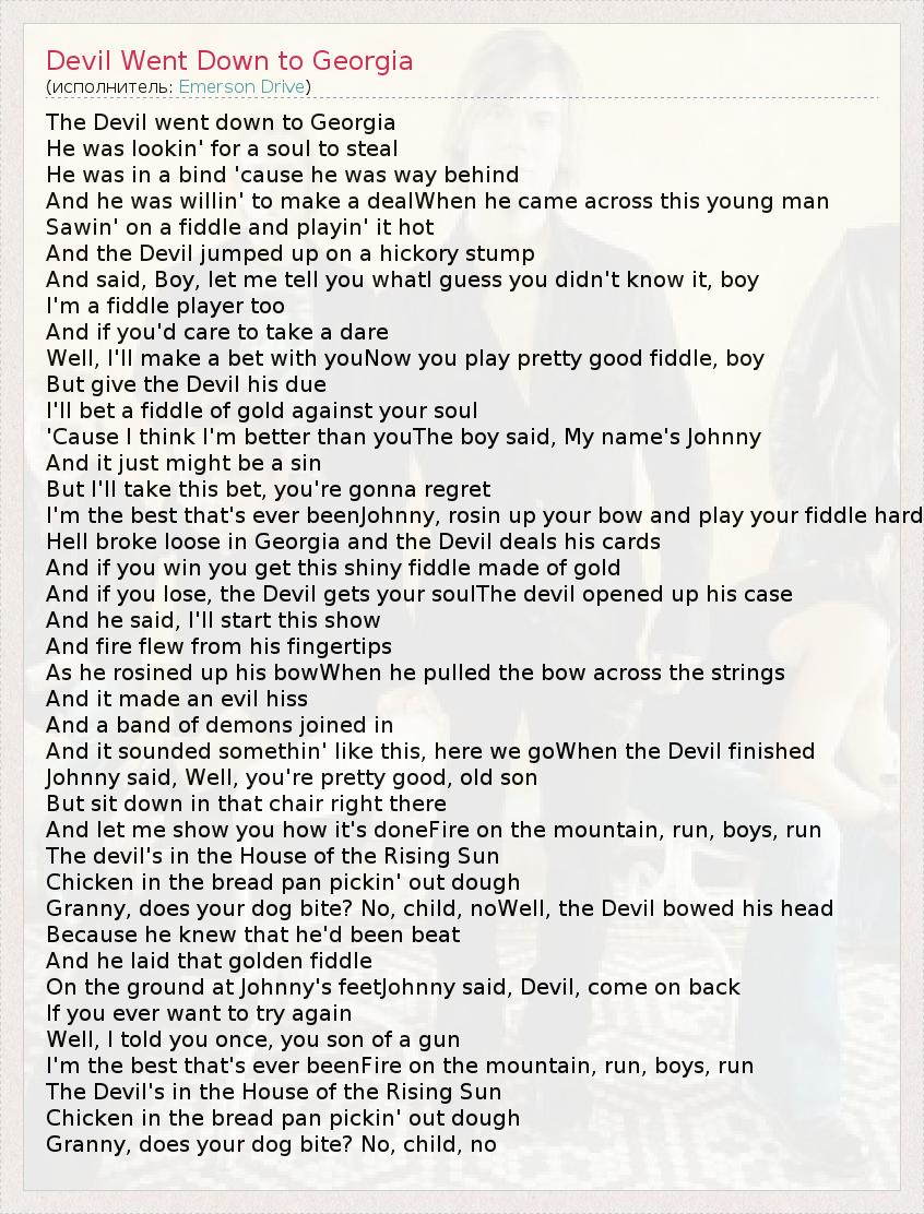 А как ты думаешь, о чем песня "Devil Went Down to Georgia" ?