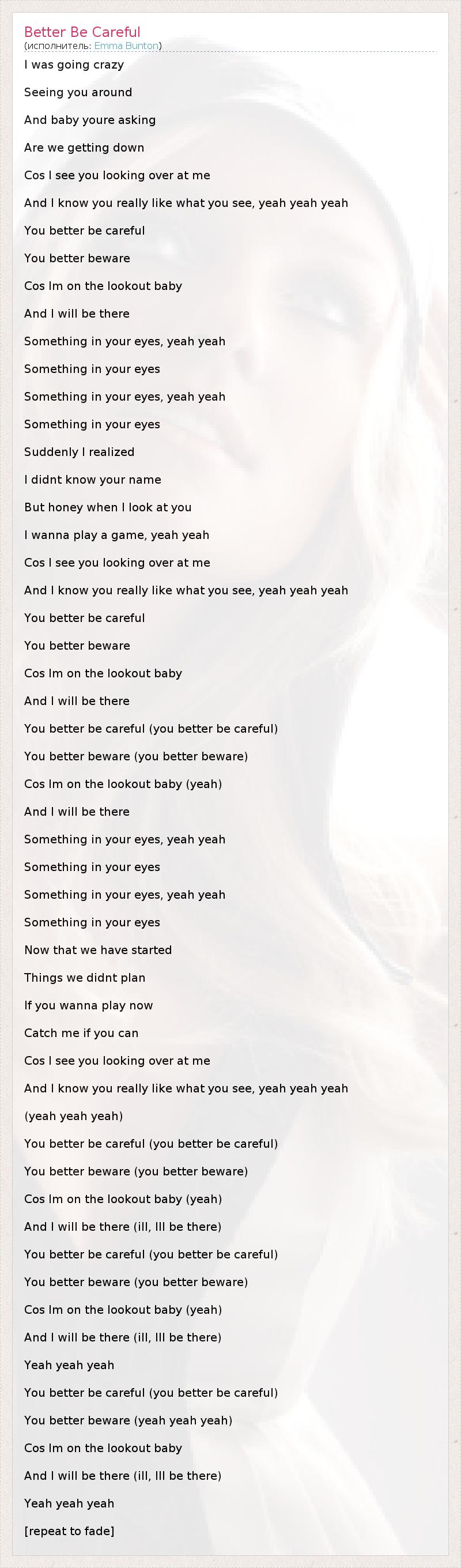 А как ты думаешь, о чем песня "Better Be Careful" ?