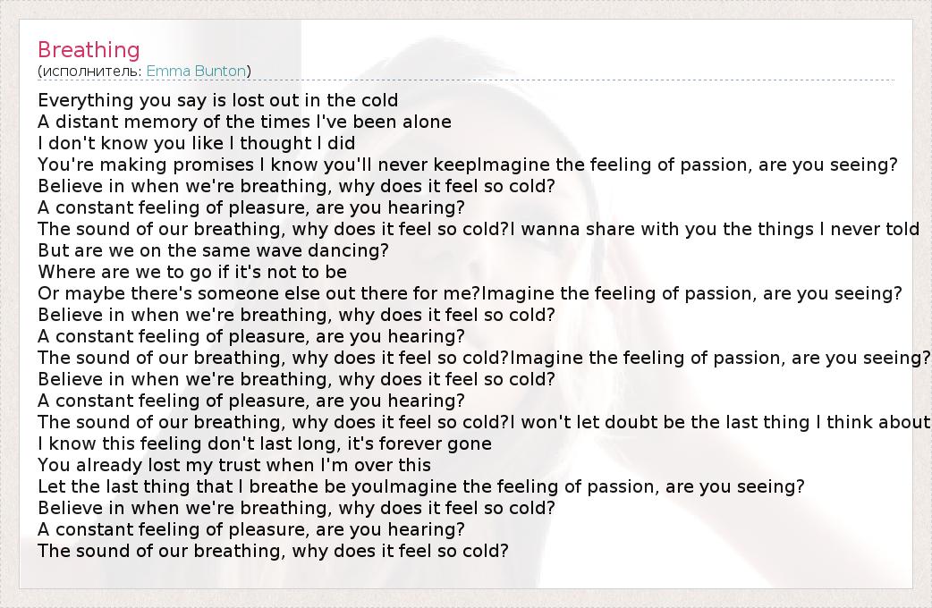 The sound of our breathing, why does it feel so cold?Imagine the feeling of passion, are you seeing?