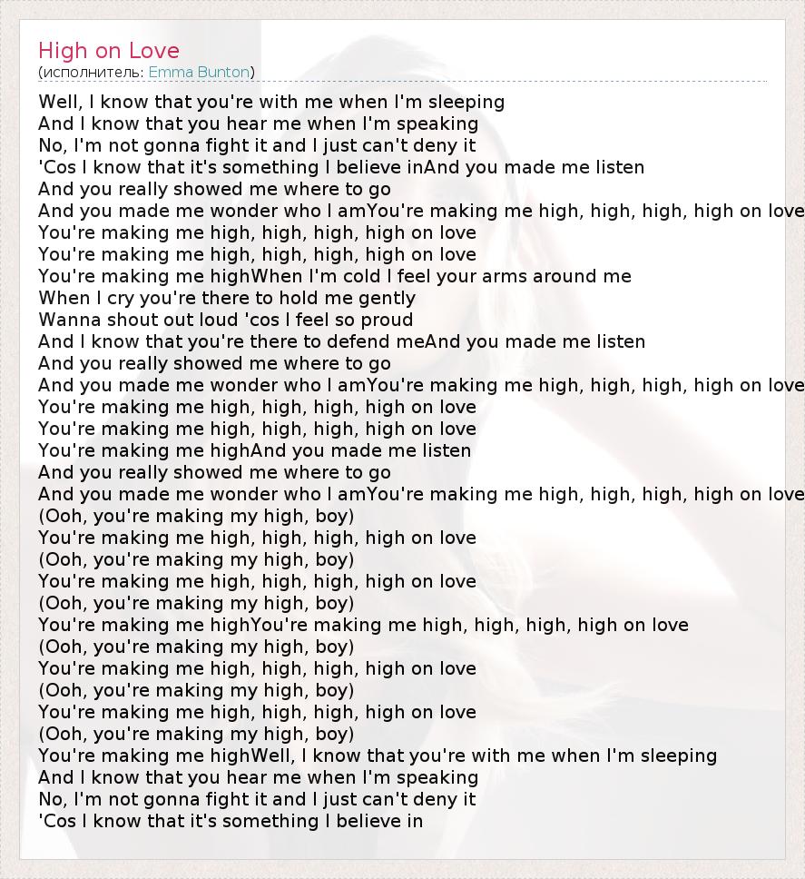 And you made me wonder who I amYou're making me high, high, high, high on love