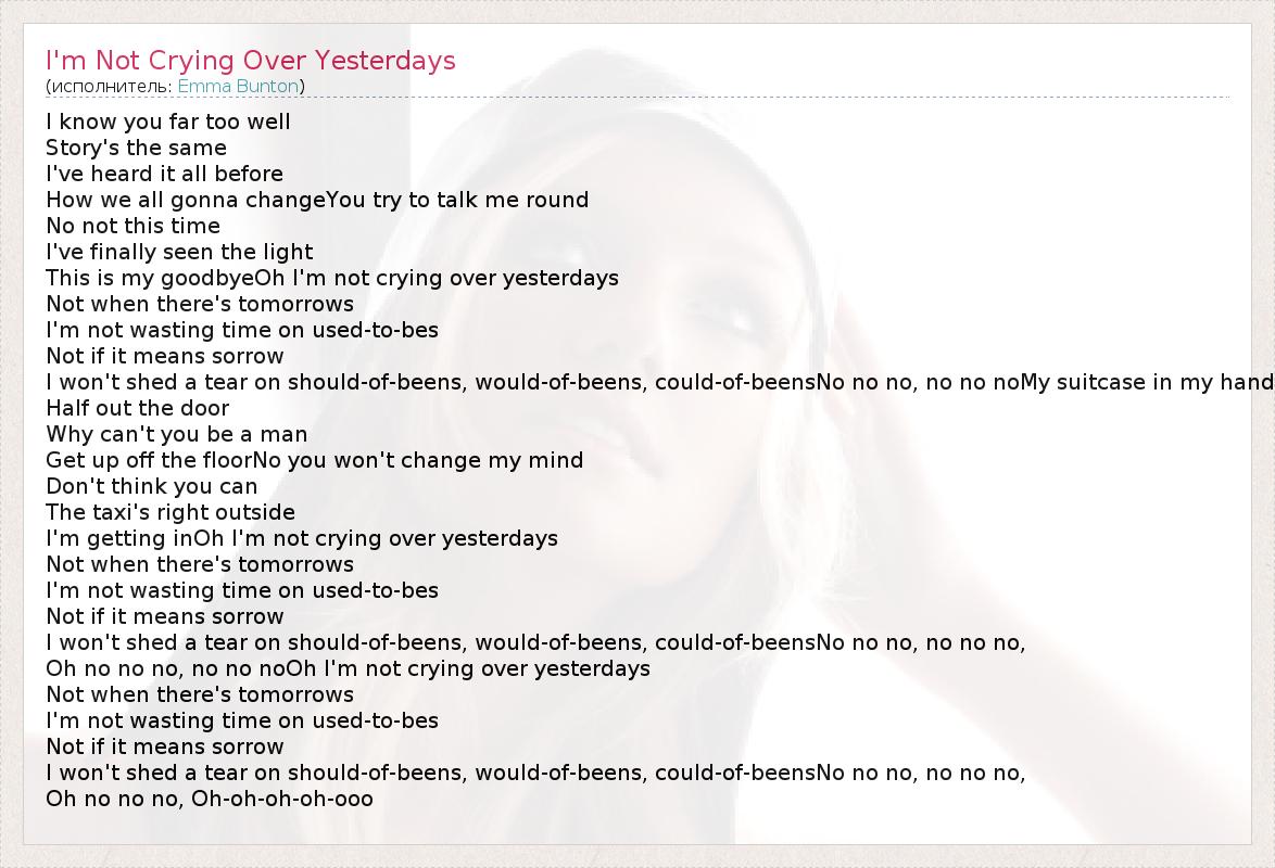 ГлавнаяИсполнителиEmma BuntonI'm Not Crying Over Yesterdays