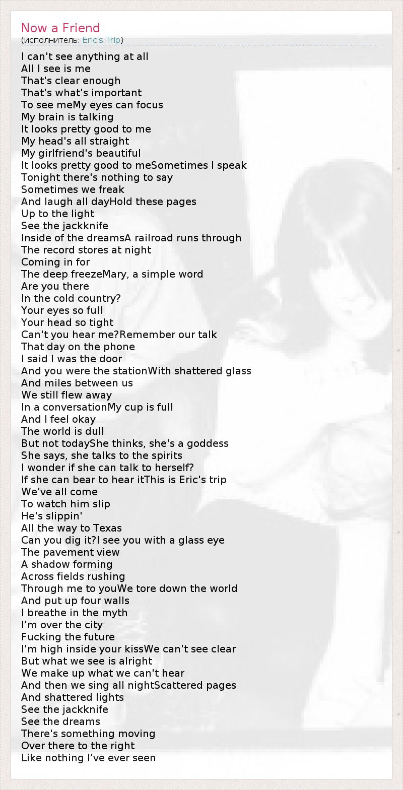 А как ты думаешь, о чем песня "Now a Friend" ?