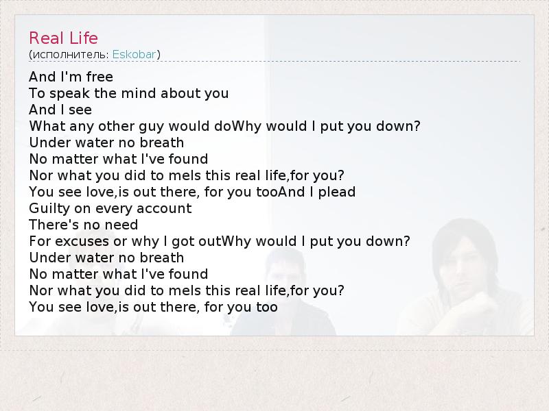 Это интересно:Eskobar - шведская поп-рок группа, образованная в 1996 году в городке Акерсберга. Состав: вокалист Daniel Bellqvist, гитарист Frederik Zäll и барабанщик Robert Birming.