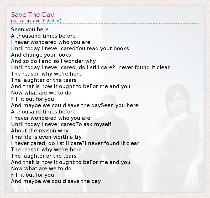 Это интересно:Eskobar - шведская поп-рок группа, образованная в 1996 году в городке Акерсберга. Состав: вокалист Daniel Bellqvist, гитарист Frederik Zäll и барабанщик Robert Birming.