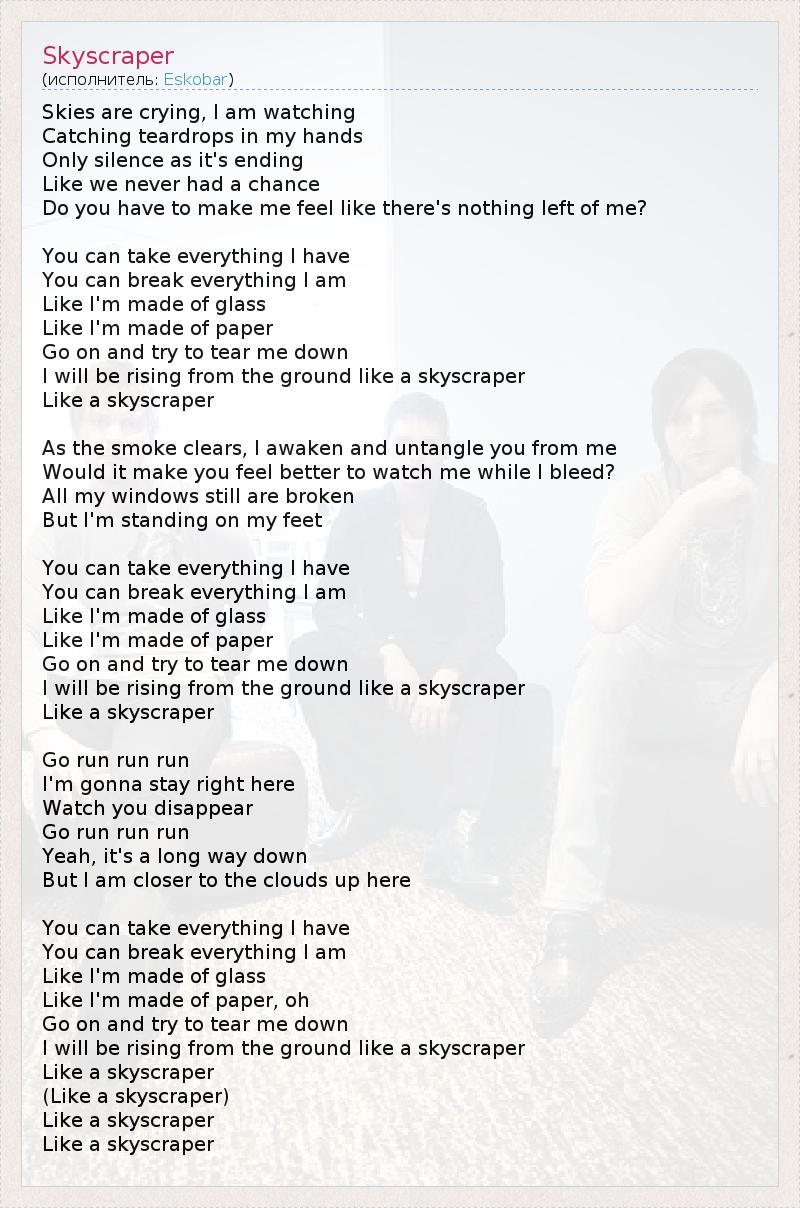 А как ты думаешь, о чем песня "Skyscraper" ?