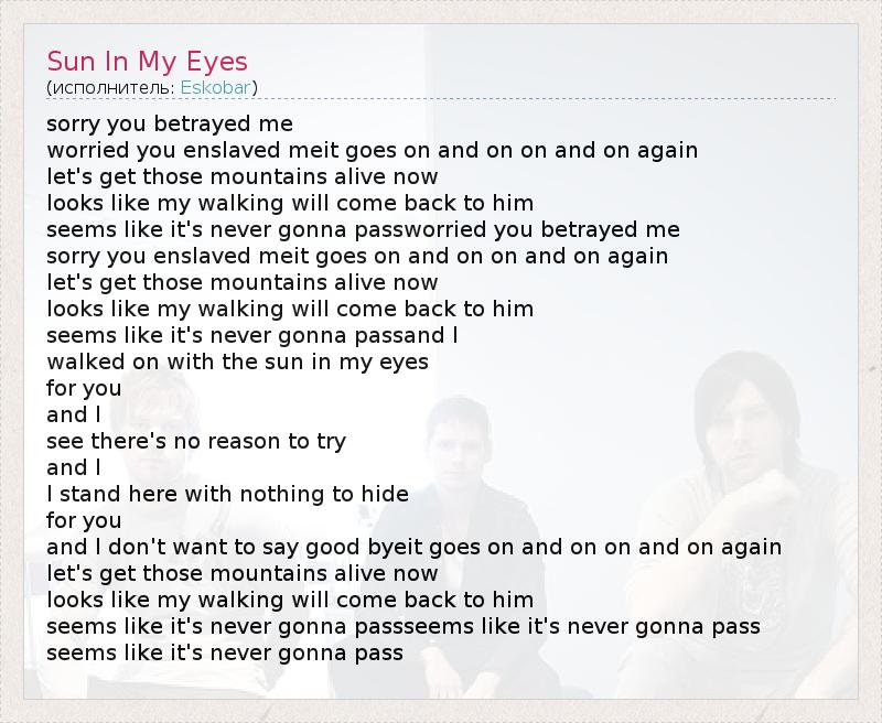 А как ты думаешь, о чем песня "Sun In My Eyes" ?