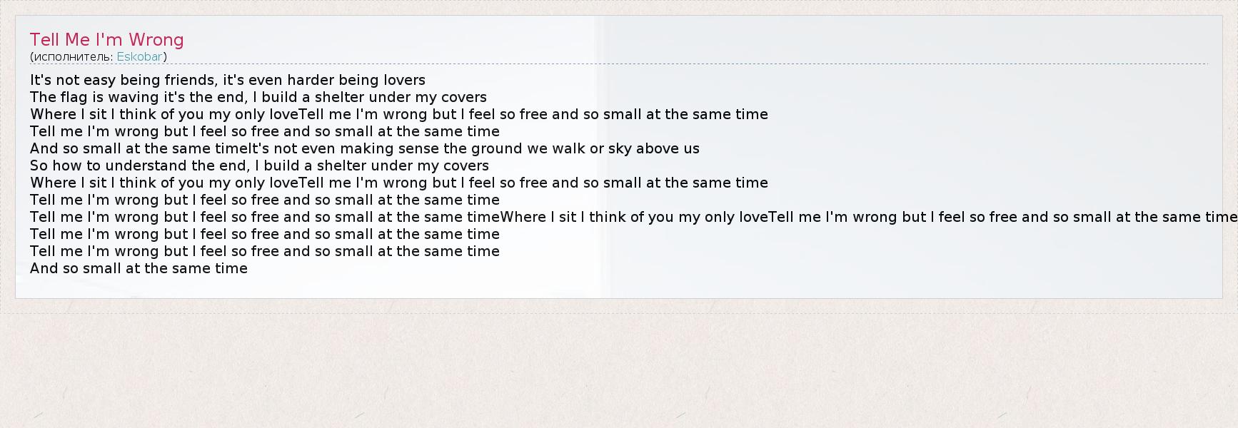 А как ты думаешь, о чем песня "Tell Me I'm Wrong" ?