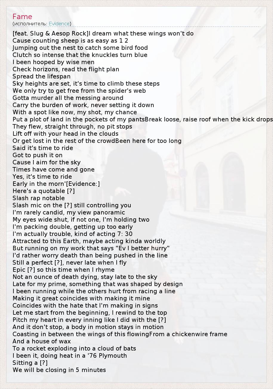 [feat. Slug & Aesop Rock]I dream what these wings won't do