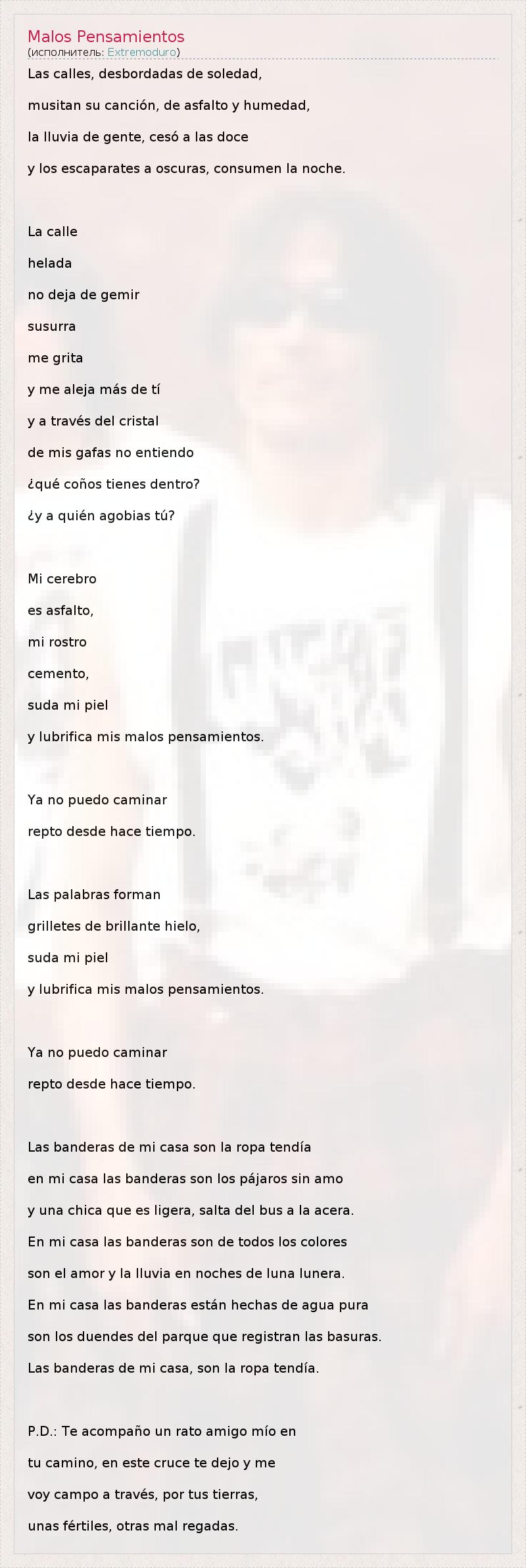 А как ты думаешь, о чем песня "Malos Pensamientos" ?