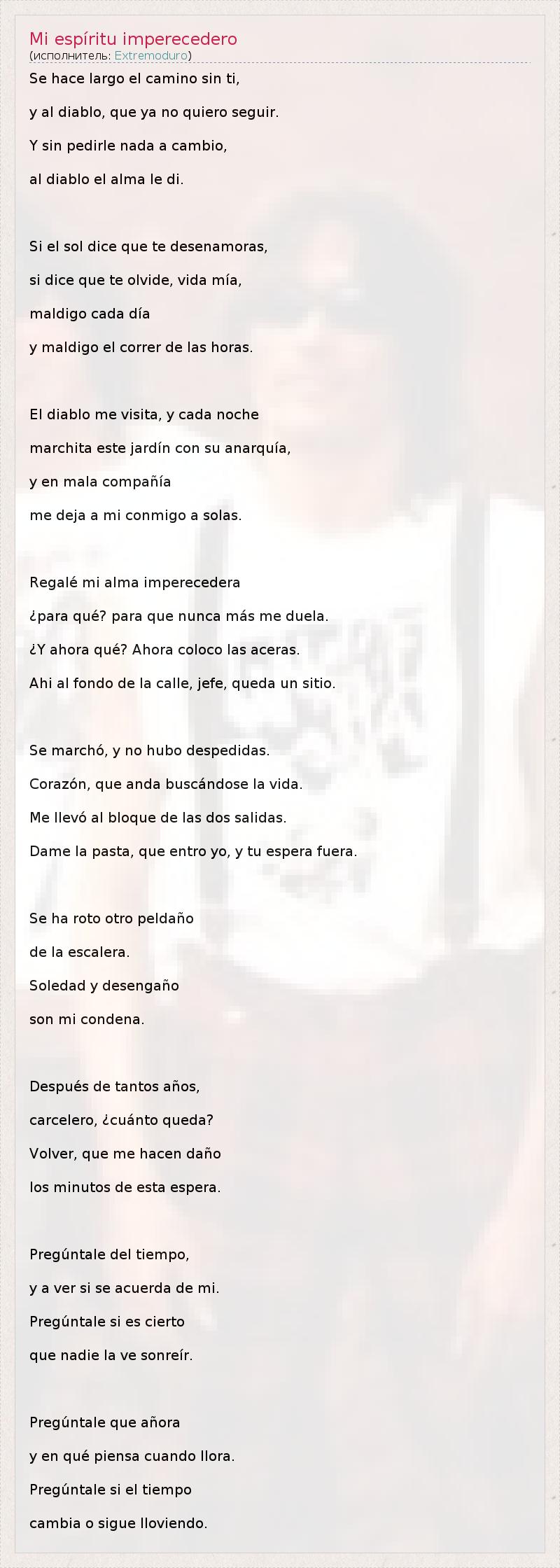 А как ты думаешь, о чем песня "Mi espíritu imperecedero" ?