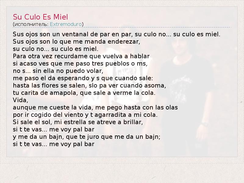 А как ты думаешь, о чем песня "Su Culo Es Miel" ?