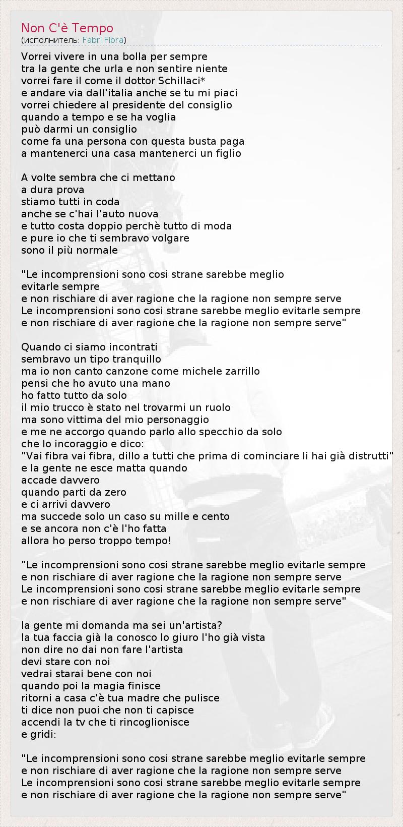 А как ты думаешь, о чем песня "Non C'è Tempo" ?