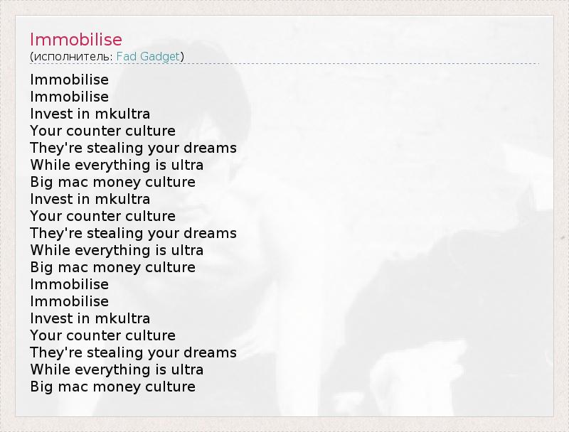 Immobilise Immobilise Invest in mkultra Your counter culture They're stealing your dreams While everything is ultra Big mac money culture Invest in mkultra Your counter culture They're stealing your dreams While everything is ultra Big mac money culture Immobilise Immobilise Invest in mkultra Your counter culture They're stealing your dreams While everything is ultra Big mac money culture