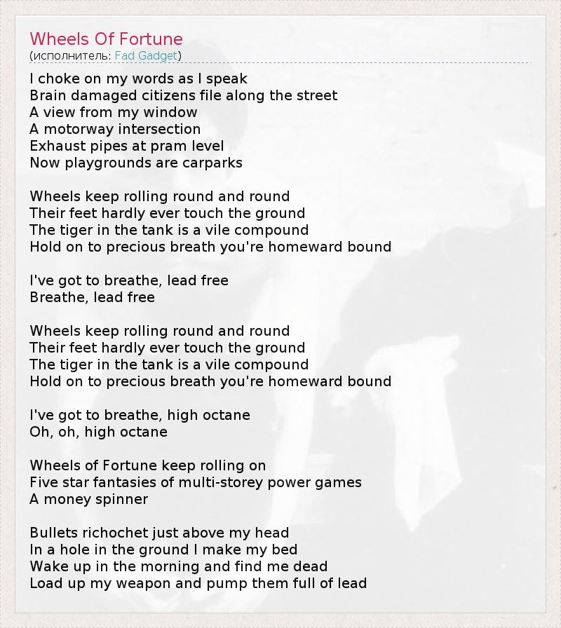 А как ты думаешь, о чем песня "Wheels Of Fortune" ?