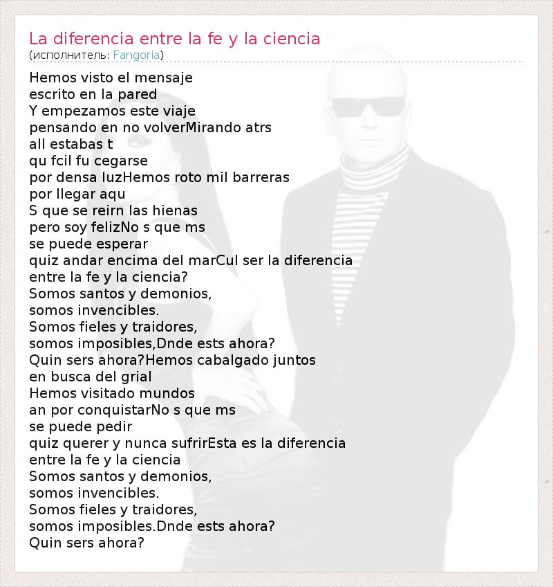 А как ты думаешь, о чем песня "La diferencia entre la fe y la ciencia" ?
