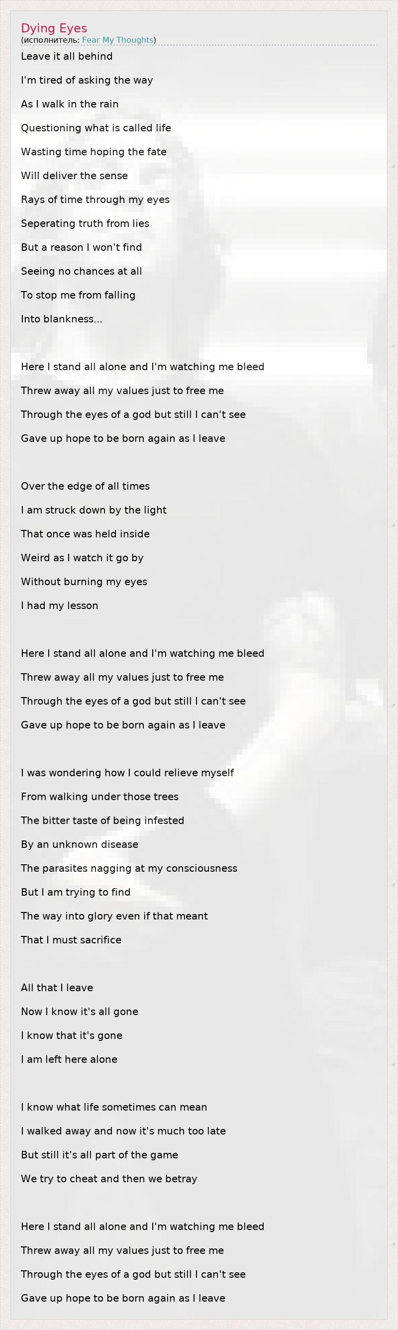 А как ты думаешь, о чем песня "Dying Eyes" ?