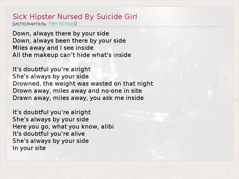 А как ты думаешь, о чем песня "Sick Hipster Nursed By Suicide Girl" ?