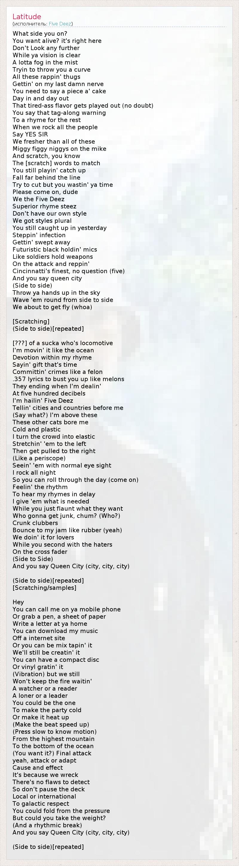 Это интересно:Это американская хип-хоп-группа из Цинциннати, штат Огайо. Эта группа состоит из: Fat Jon the Ample Soul Physician (John Marshall) (Джон Маршалл), Pase Rock (Patrick Johnson) (Патрик Джонсон), Kyle David (Дэвид Кайл) (AKA Chilly Most), and Sonic (Corey Brown). Фат Джон в настоящее время проживает в Берлине, Германия, а Пасе Рок живет в Нью-Йорке, Кайл и Акустический оставшихся в Цинциннати. В их творчестве прослеживается влияние различных жанров музыки.:... продолжение
