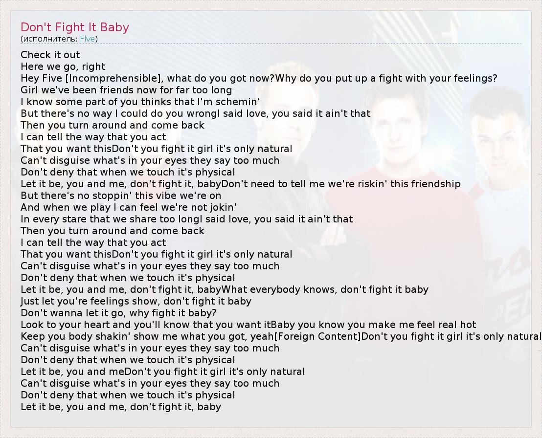 ГлавнаяИсполнителиFiveDon't Fight It Baby