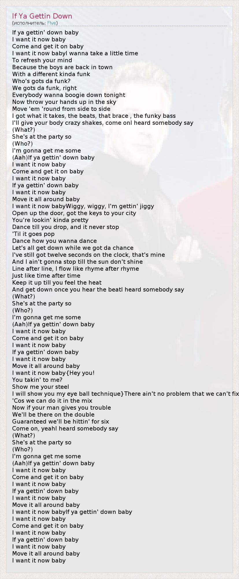 А как ты думаешь, о чем песня "If Ya Gettin Down" ?