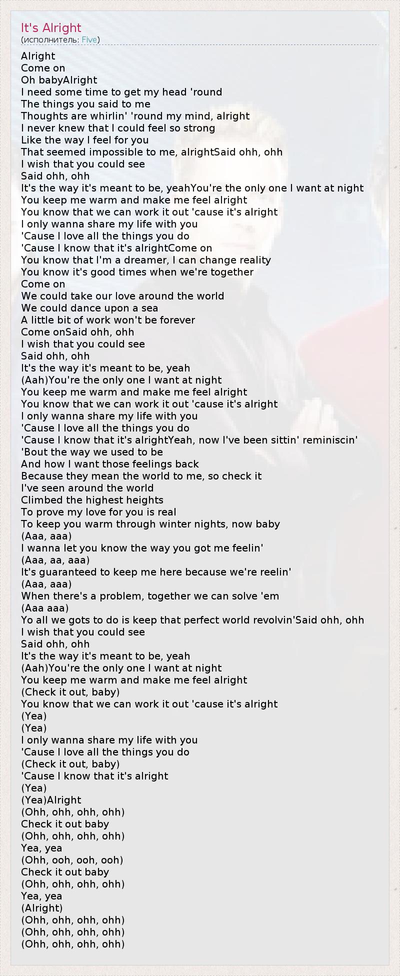 'Cause I know that it's alrightYeah, now I've been sittin' reminiscin'