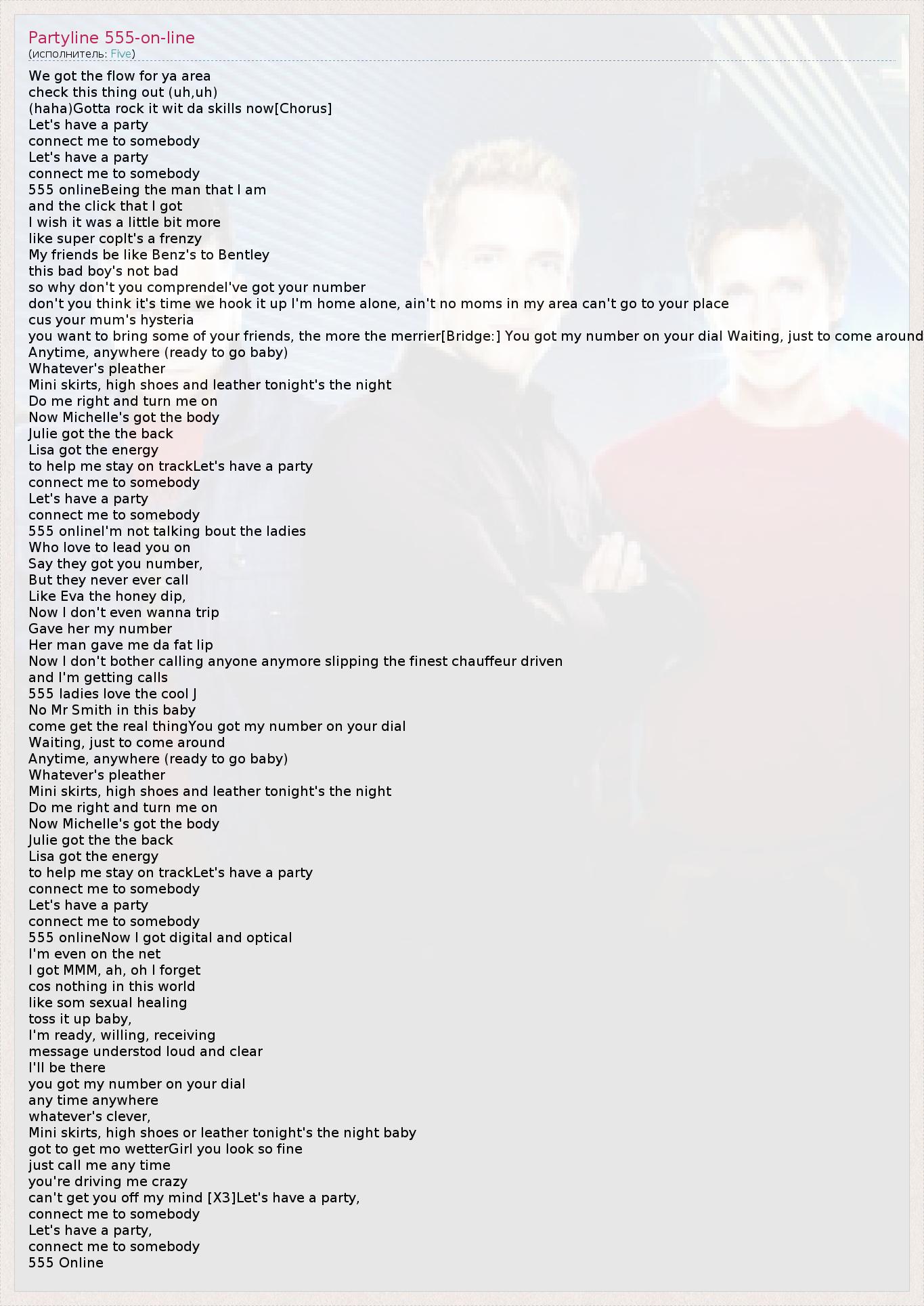 А как ты думаешь, о чем песня "Partyline 555-on-line" ?