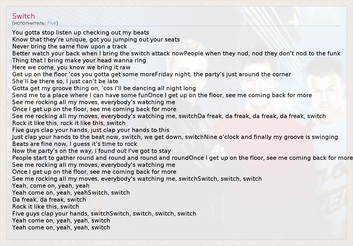 Five guys clap your hands, switchSwitch, switch, switch, switch