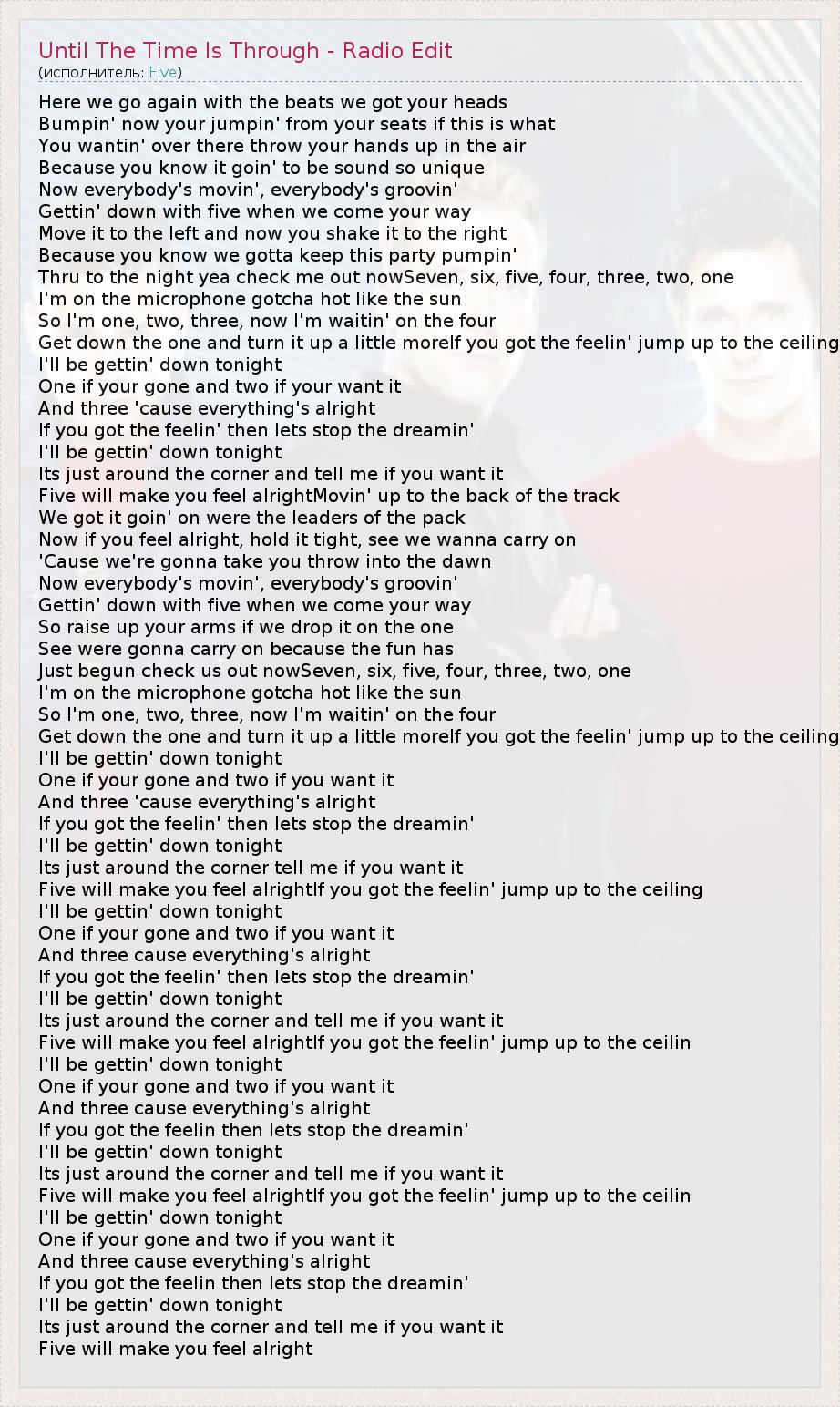 ГлавнаяИсполнителиFiveUntil The Time Is Through - Radio Edit