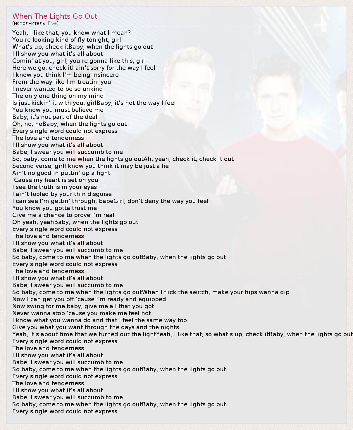 А как ты думаешь, о чем песня "When The Lights Go Out" ?