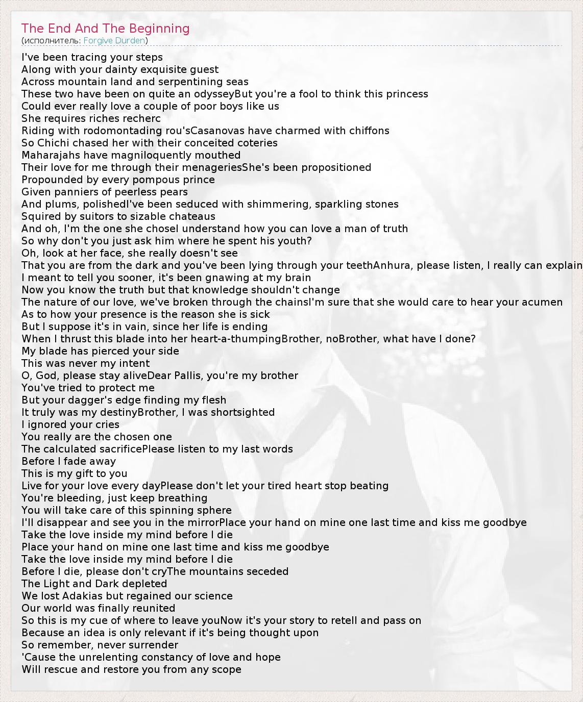 А как ты думаешь, о чем песня "The End And The Beginning" ?