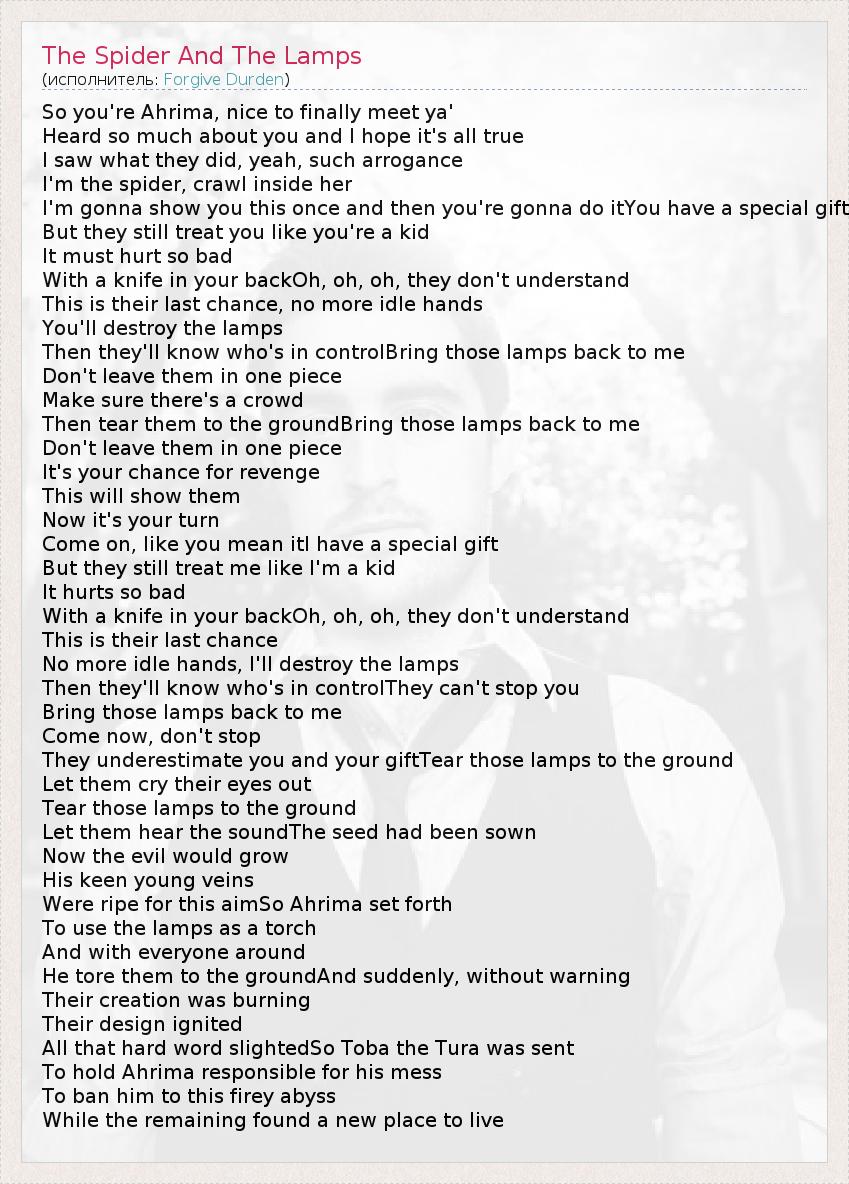 А как ты думаешь, о чем песня "The Spider And The Lamps" ?